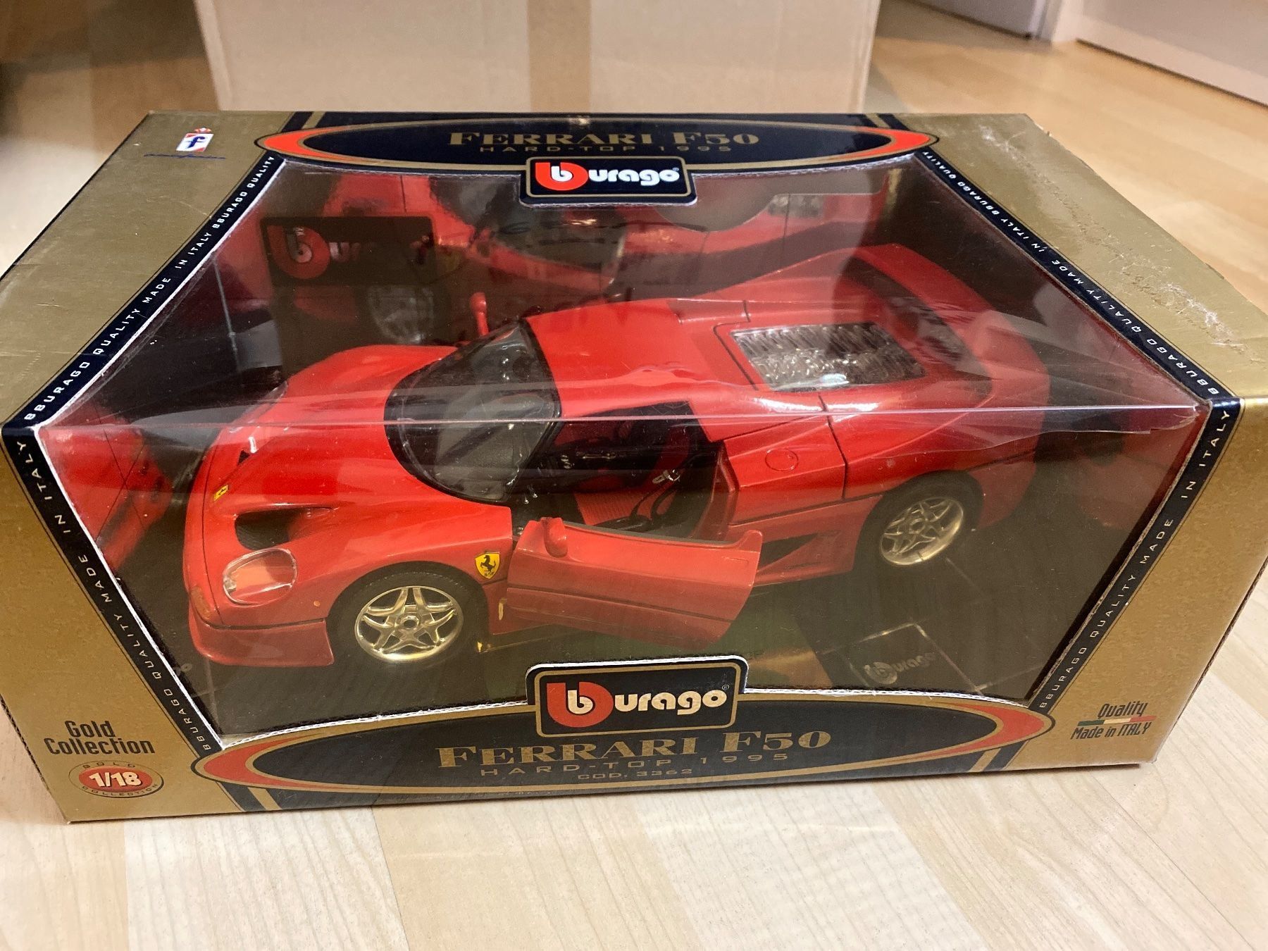 It seems like it is some kind of celebration package(i guess it is to bburago). La ferrari black matte 1:18th bburago. Bburago gold 1/18 ferrari f50 aperta #3352 diecast catalogo. Ferrari f50 1995 1/18 diecast by bburago. Ferrari f50 yellow 1/18 diecast model car by bburago 16004y.